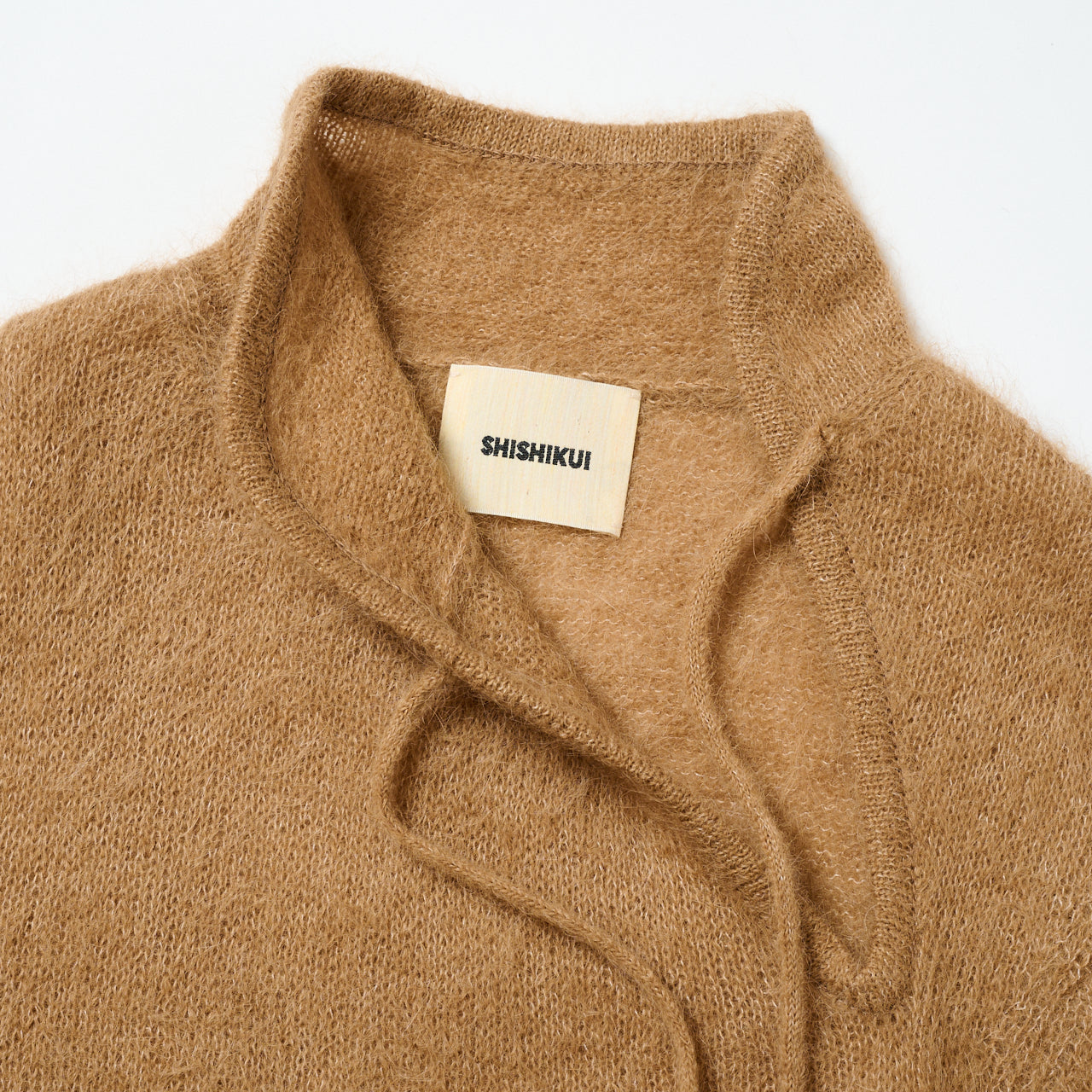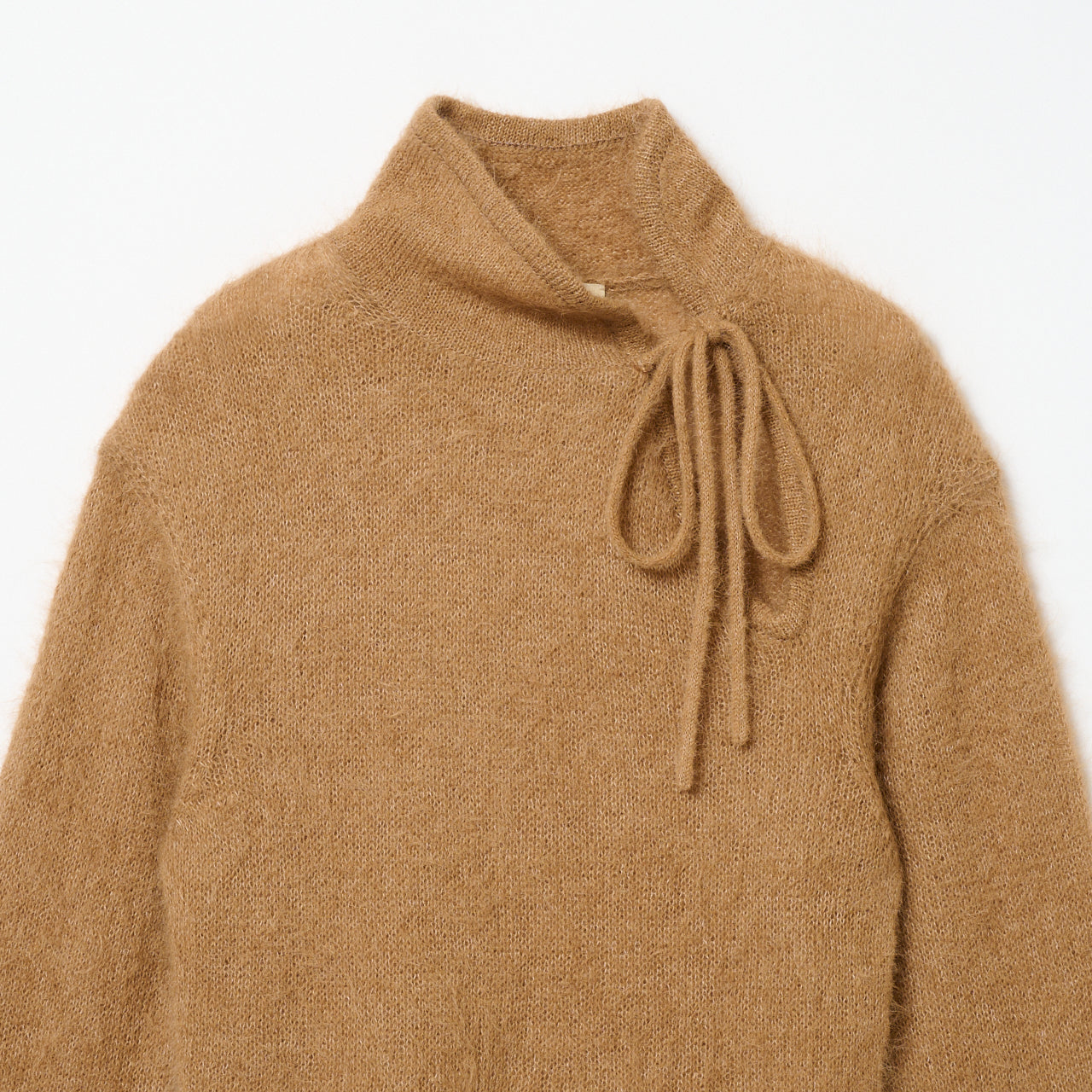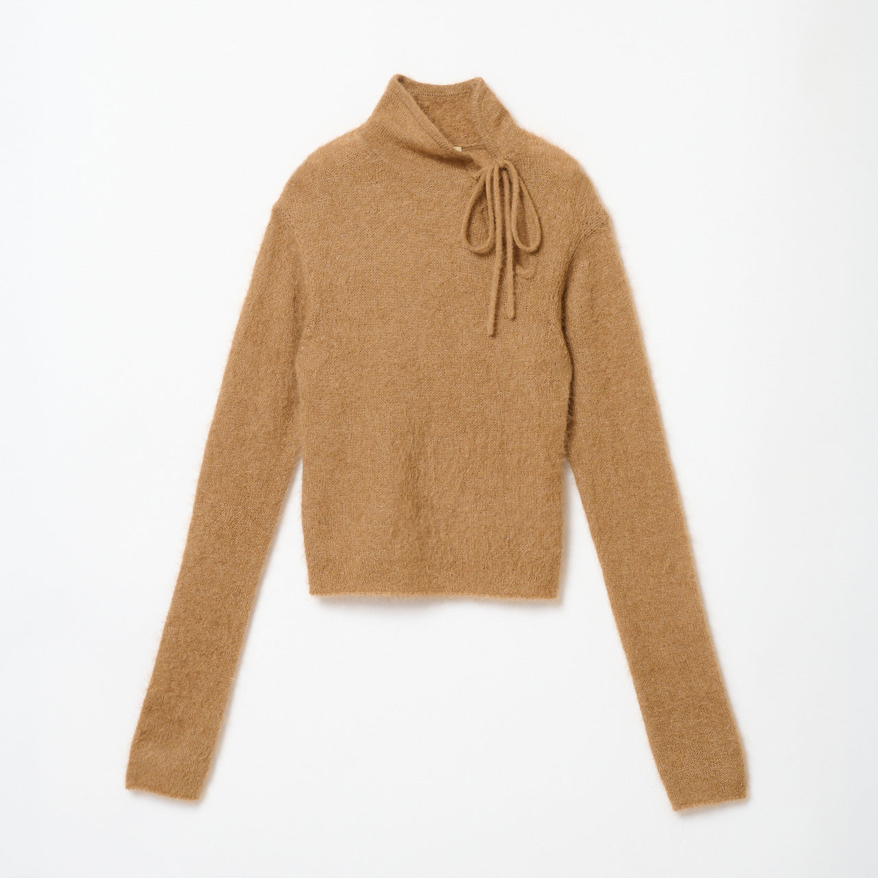 チャイナカラーのロングスリーブニット。軽く柔らかなアルパカ混。