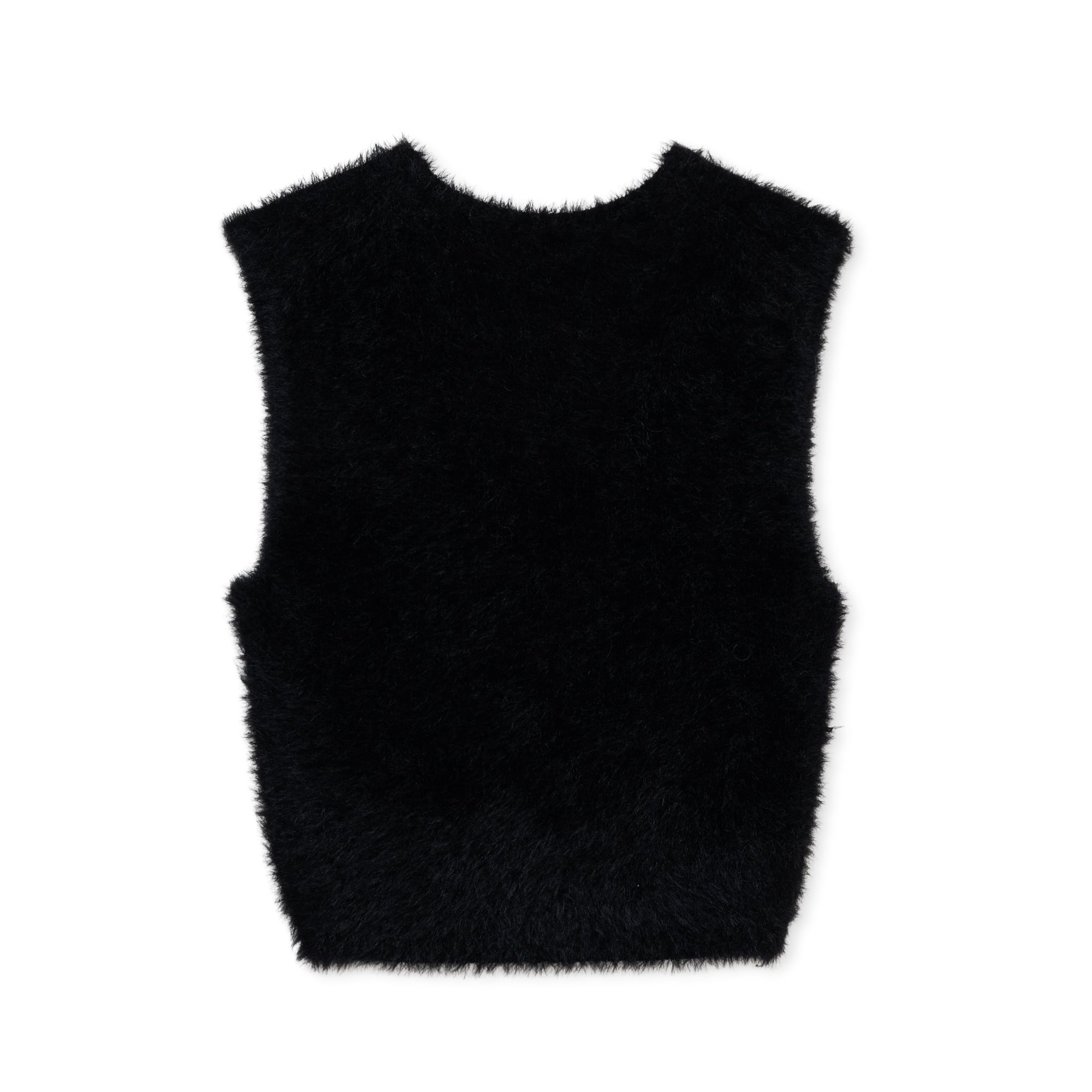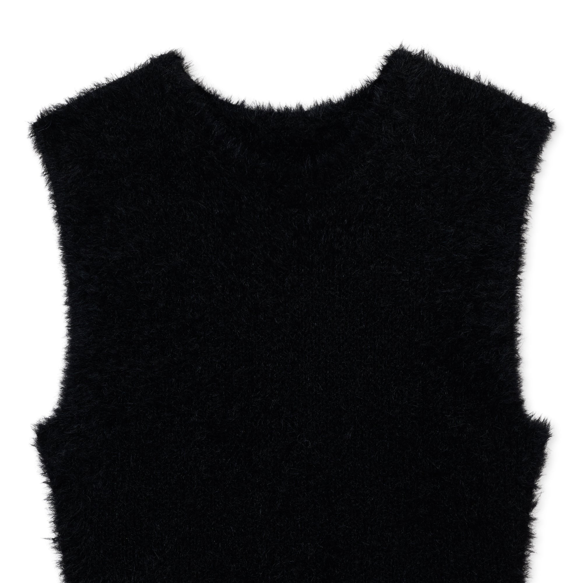 毛足の長いウールミックス糸を編み込んだノースリーブトップスです。