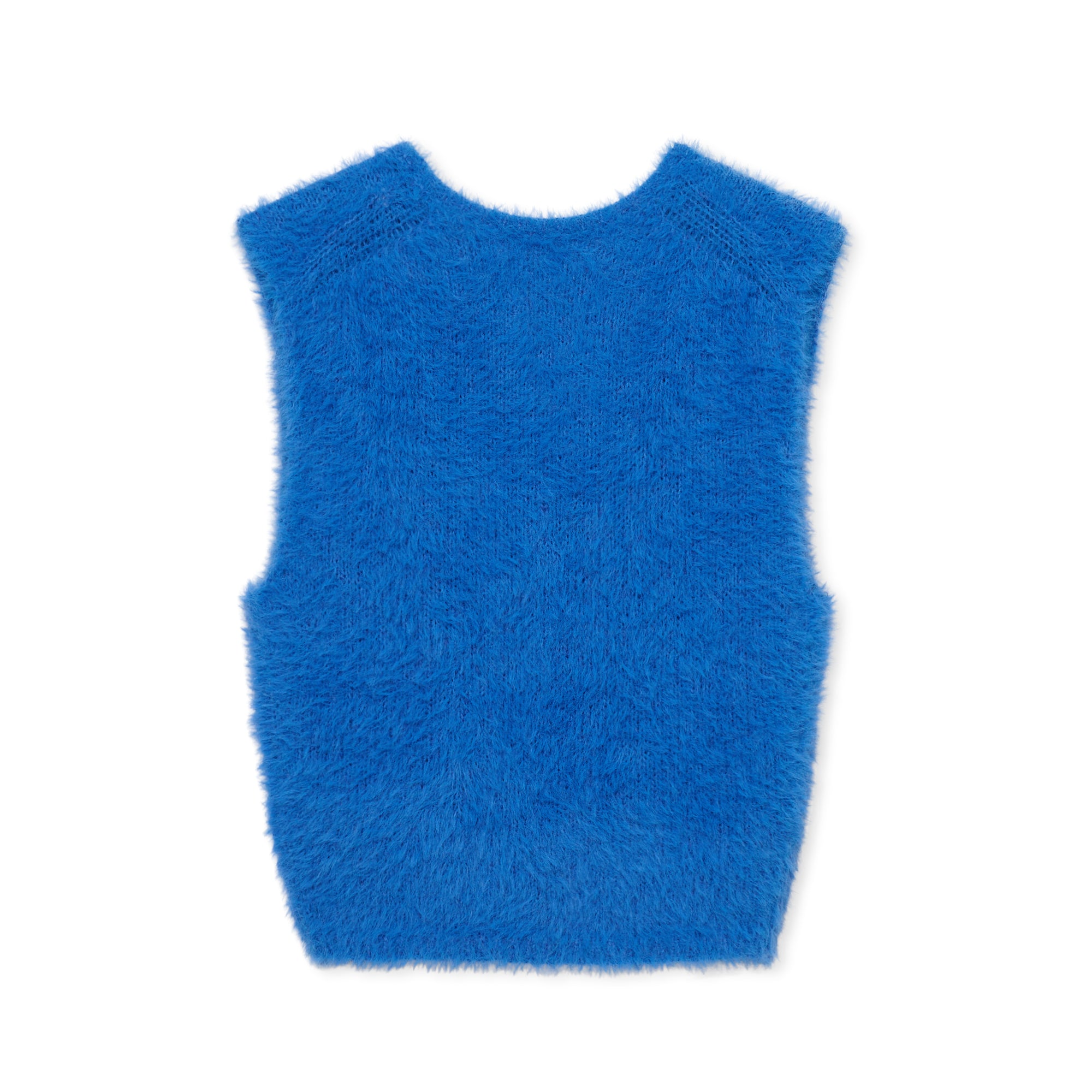 毛足の長いウールミックス糸を編み込んだノースリーブトップスです。