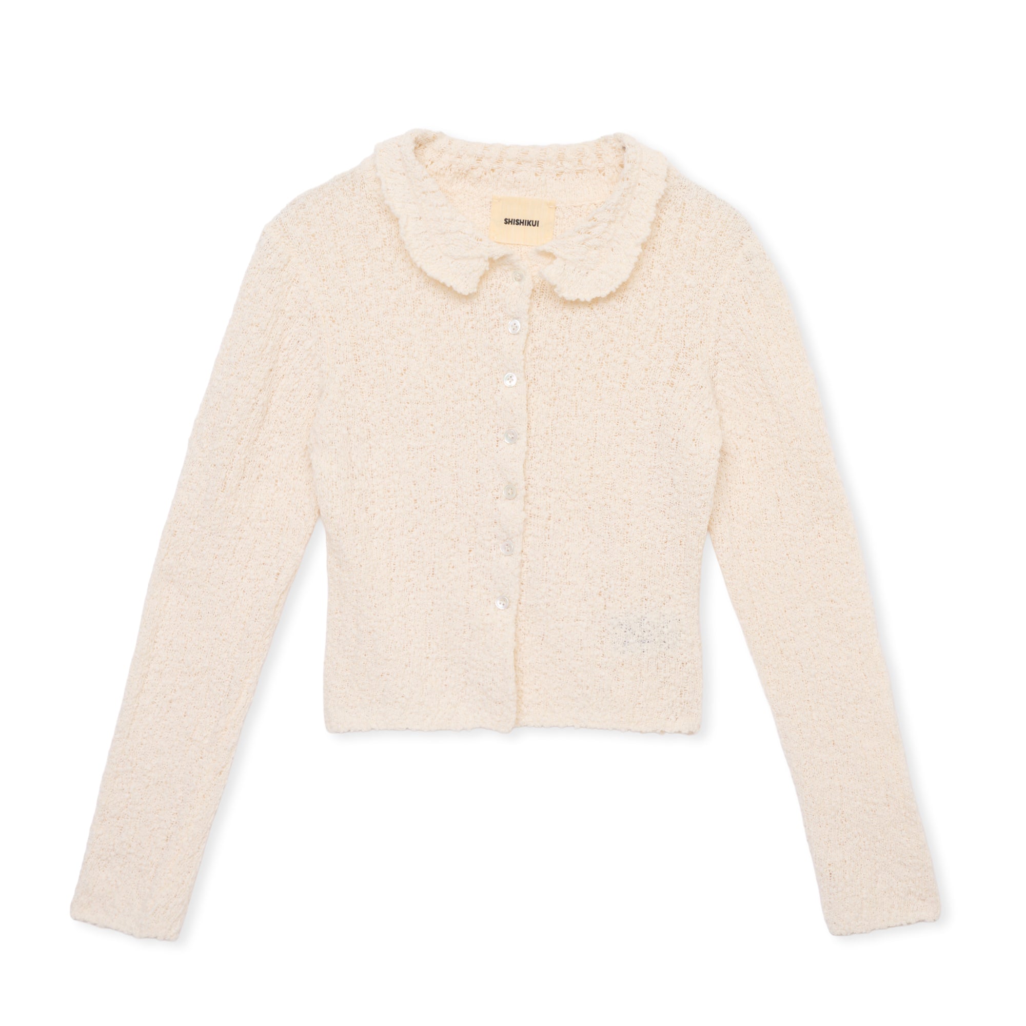 凹凸のある糸をリブ編みで仕上げたニットカーディガン。
