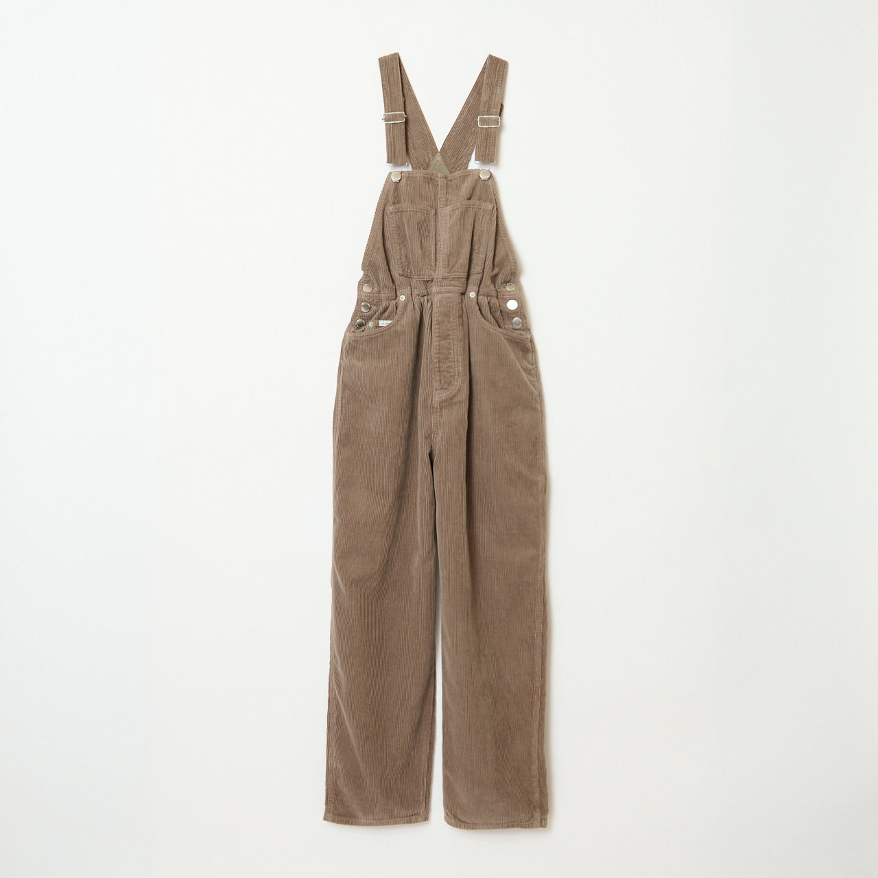 太畝コーデュロイを使用したテーパードシルエットのジャンプスーツ。