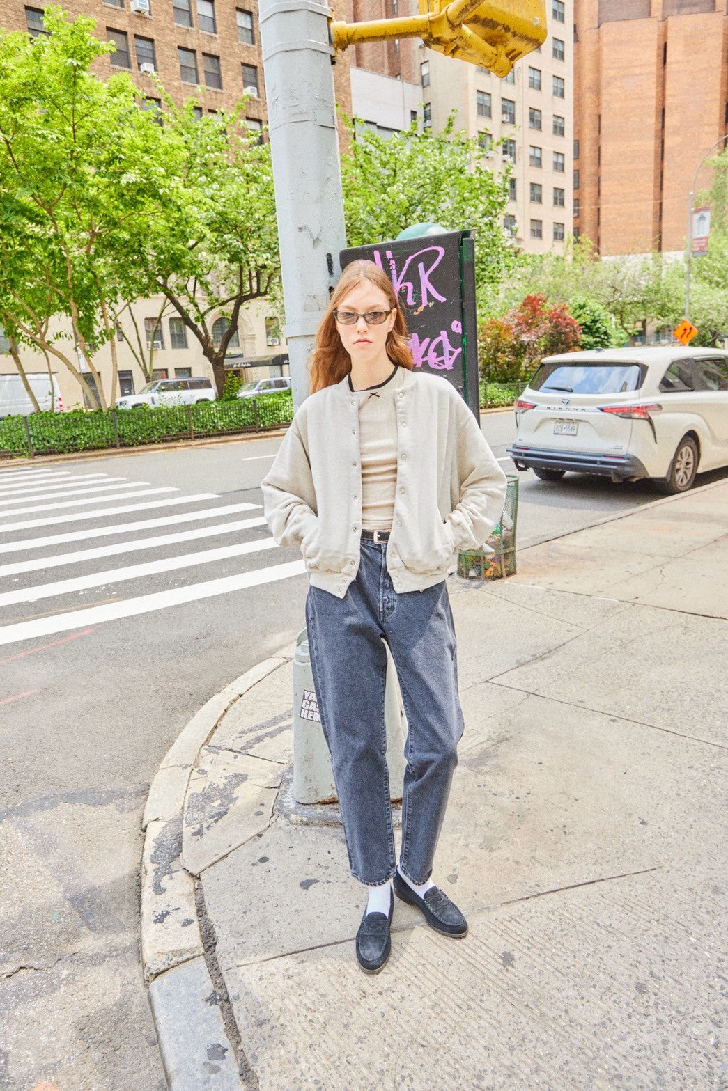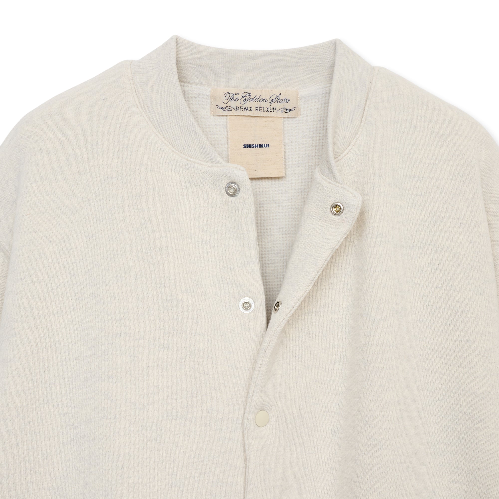14ゲージのオリジナル素材の裏地に保温性の高いワッフル生地をを使用しています。スウェットですが生地は厚いのでアウターとしても使用出来るスタジャンです。REMI RELIEF独自の加工によりヴィンテージ感を出しています。