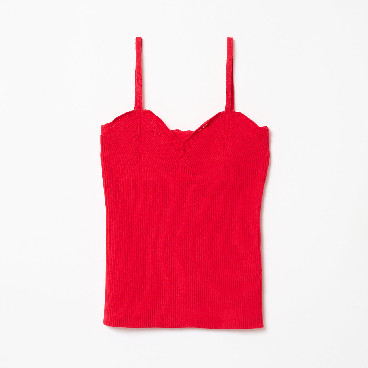 胸元に編み地でフリルを施したリブニットキャミソール。