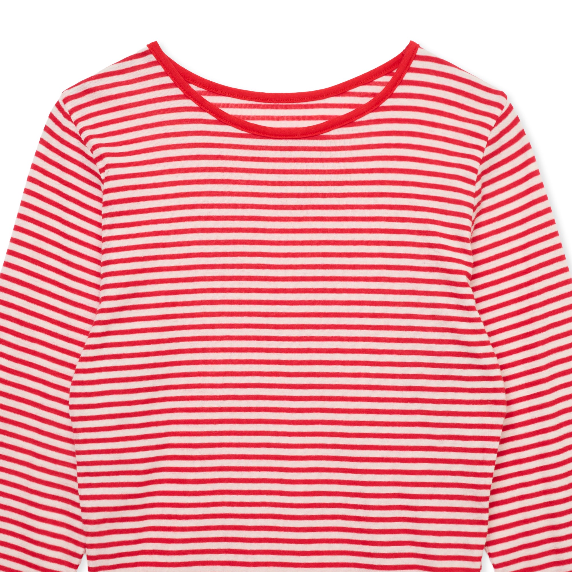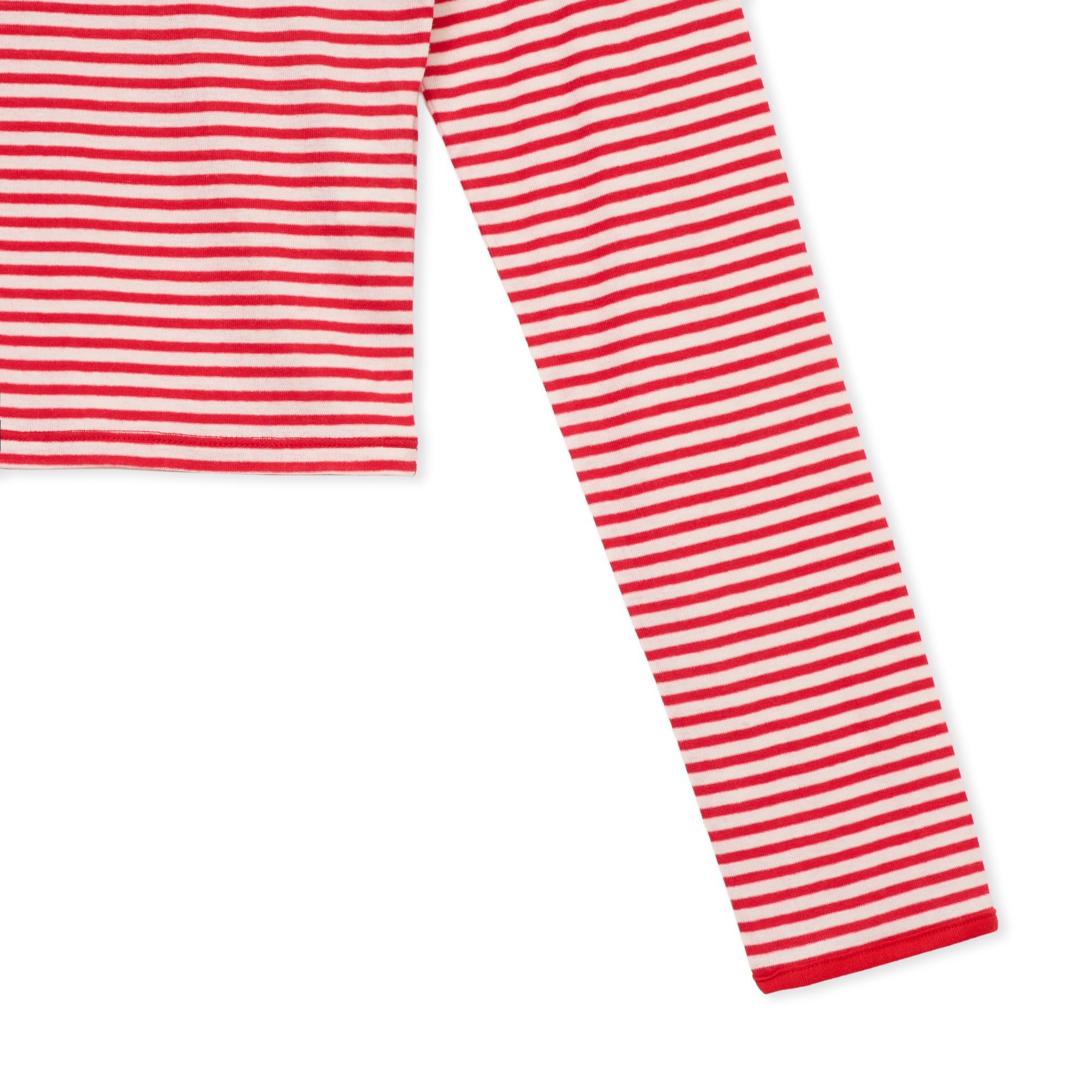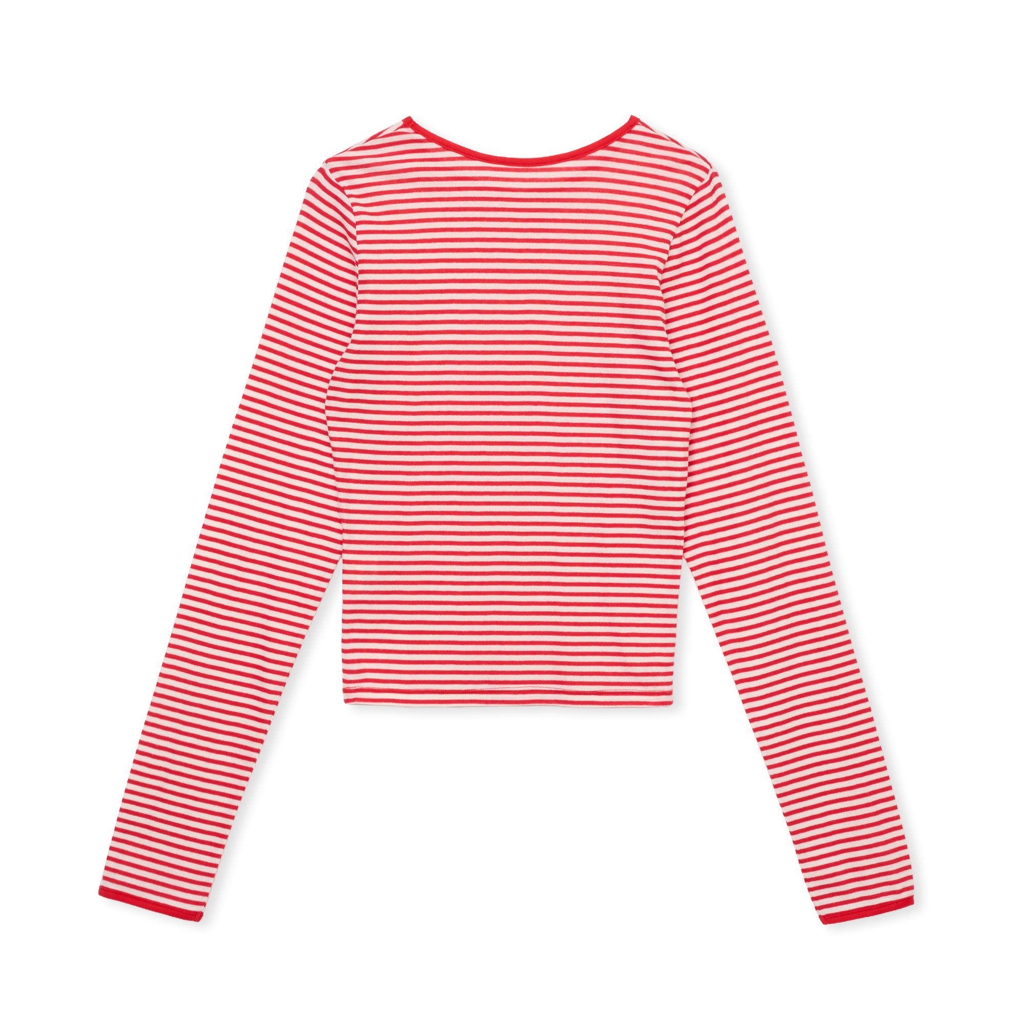 薄手のコットン・ポリウレタン生地を使用したロングボーダートップス。