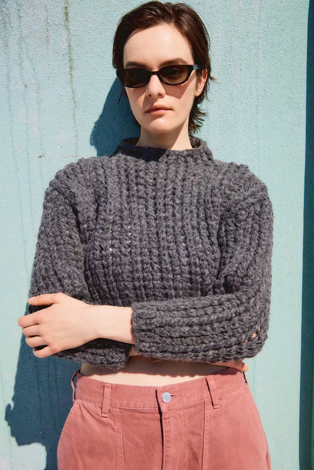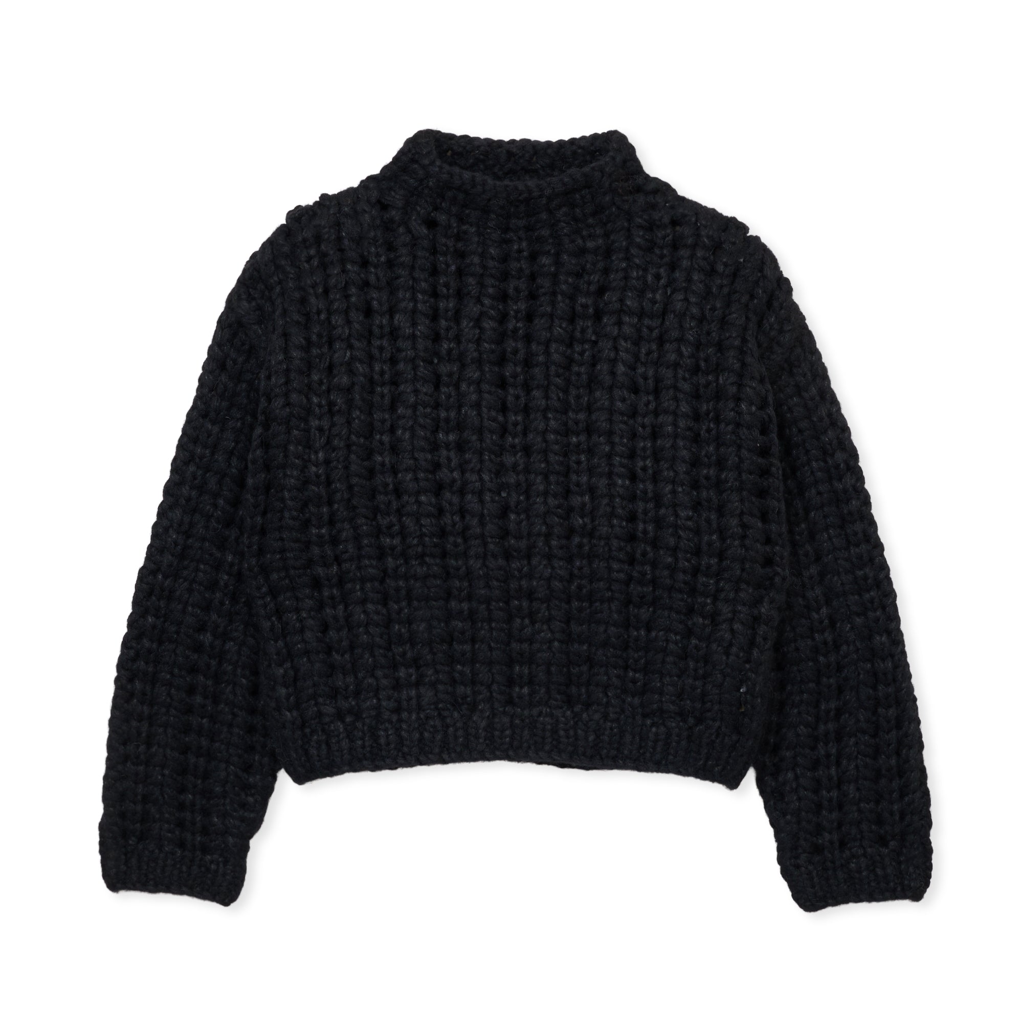 アルパカ混ウール糸を編み上げたショート丈プルオーバーニット。