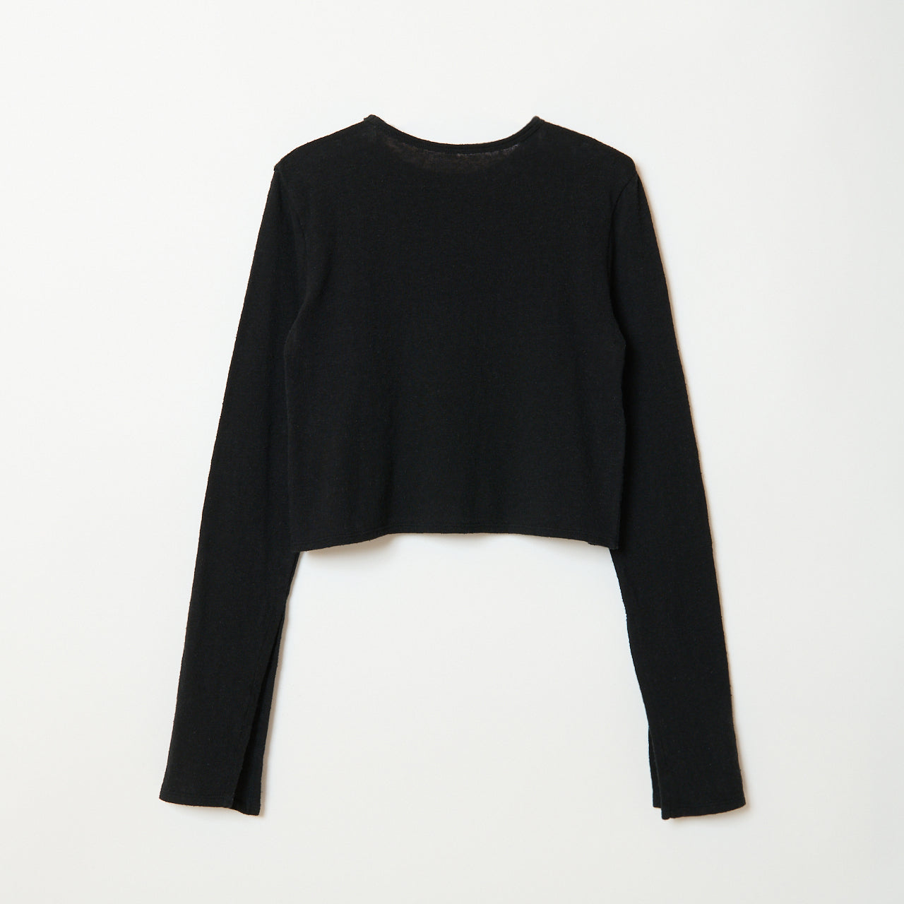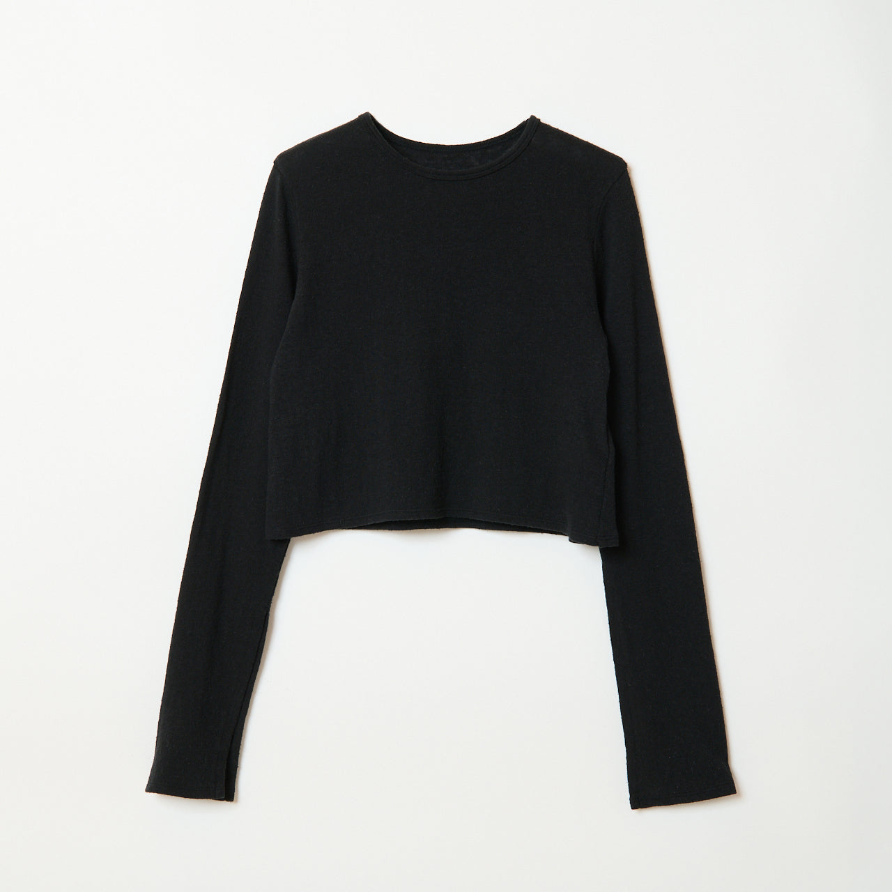 ■返品不可・交換不可・キャンセル不可■ギフトラッピング不可ネップが含まれたコットシルクノイルソフト天竺を使ったショート丈のロングスリーブトップス。袖口にスリットを入れたデザイン。New long より丈が短くなっています。【サイズ】Free着丈43cm身幅39cm袖丈61cm*伸縮性のある素材の為多少の誤差はご了承ください。