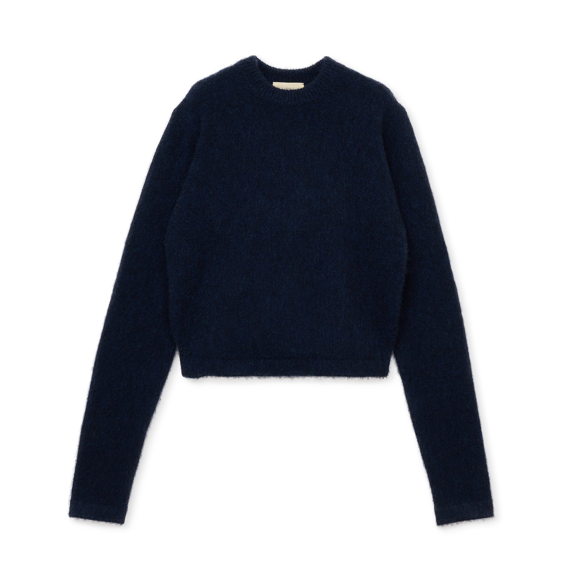 高い保温性、しっとりとした滑らかな肌触りヤクの毛糸を使用したコンパクトプルオーバーニット。