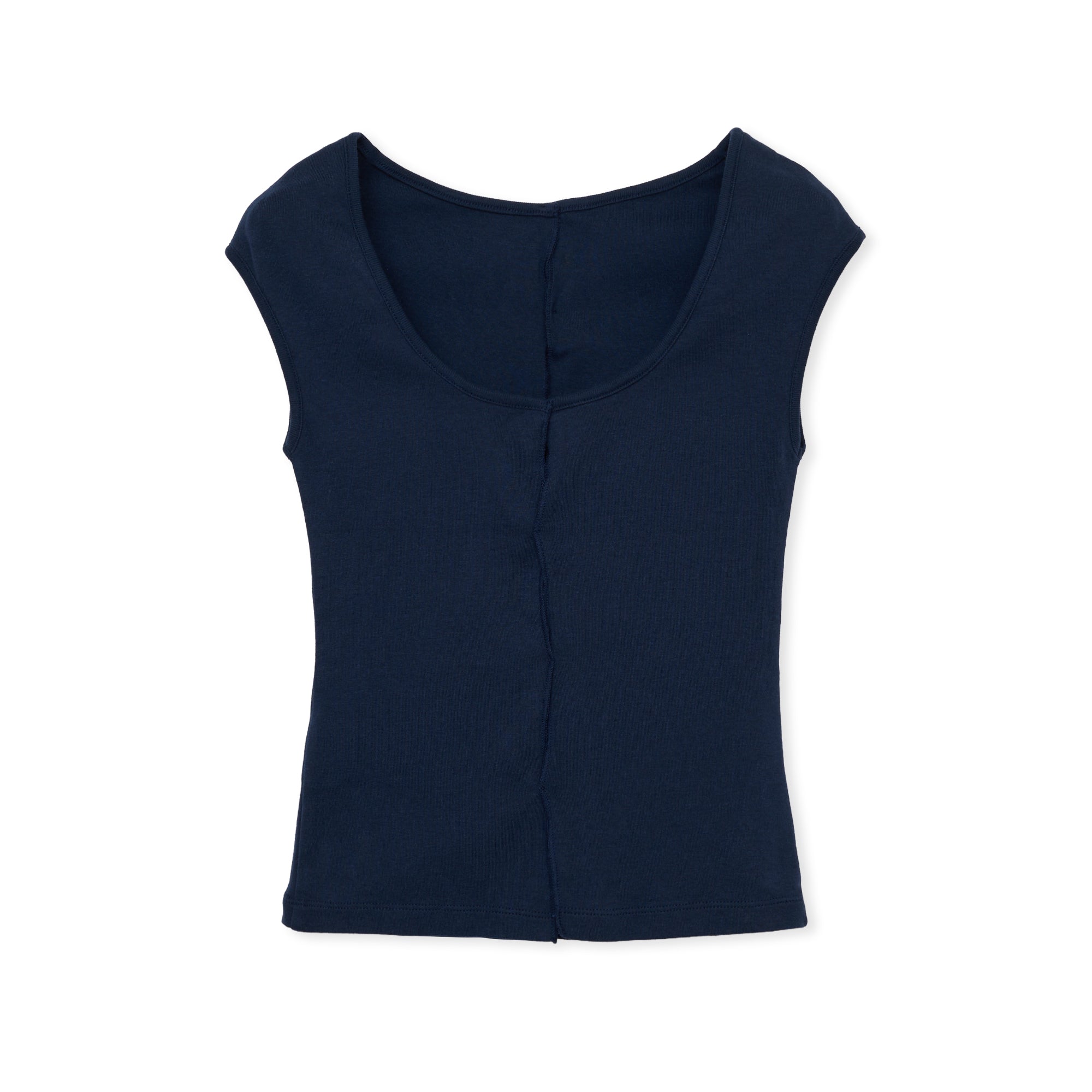 前見頃・後ろ見頃にカッティングデザインを施したトップス。