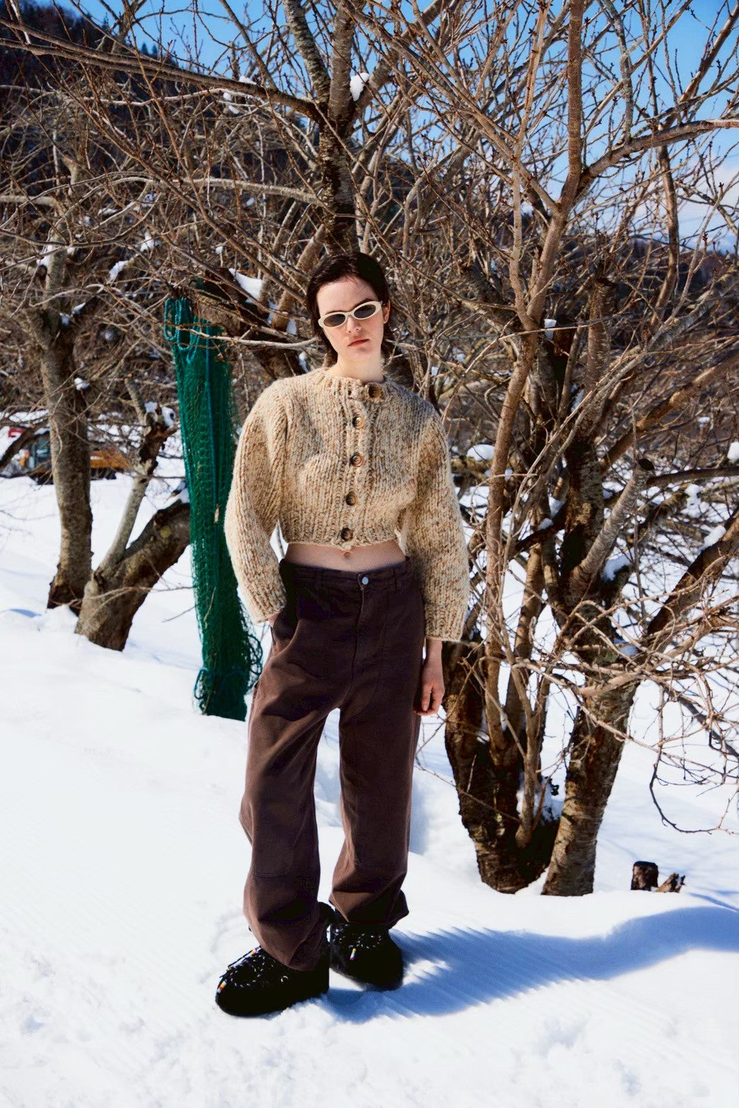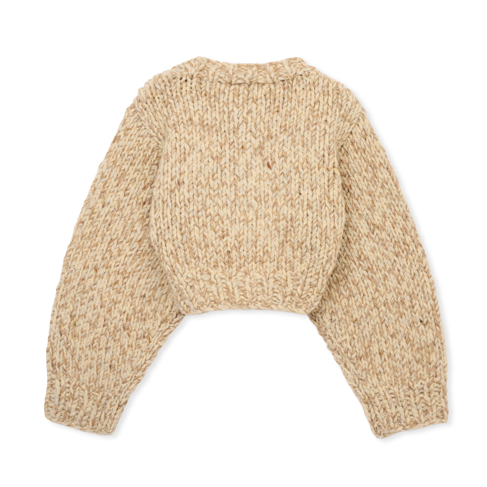 ミックス糸を大きめなゲージで編み上げた、カーディガンです。
