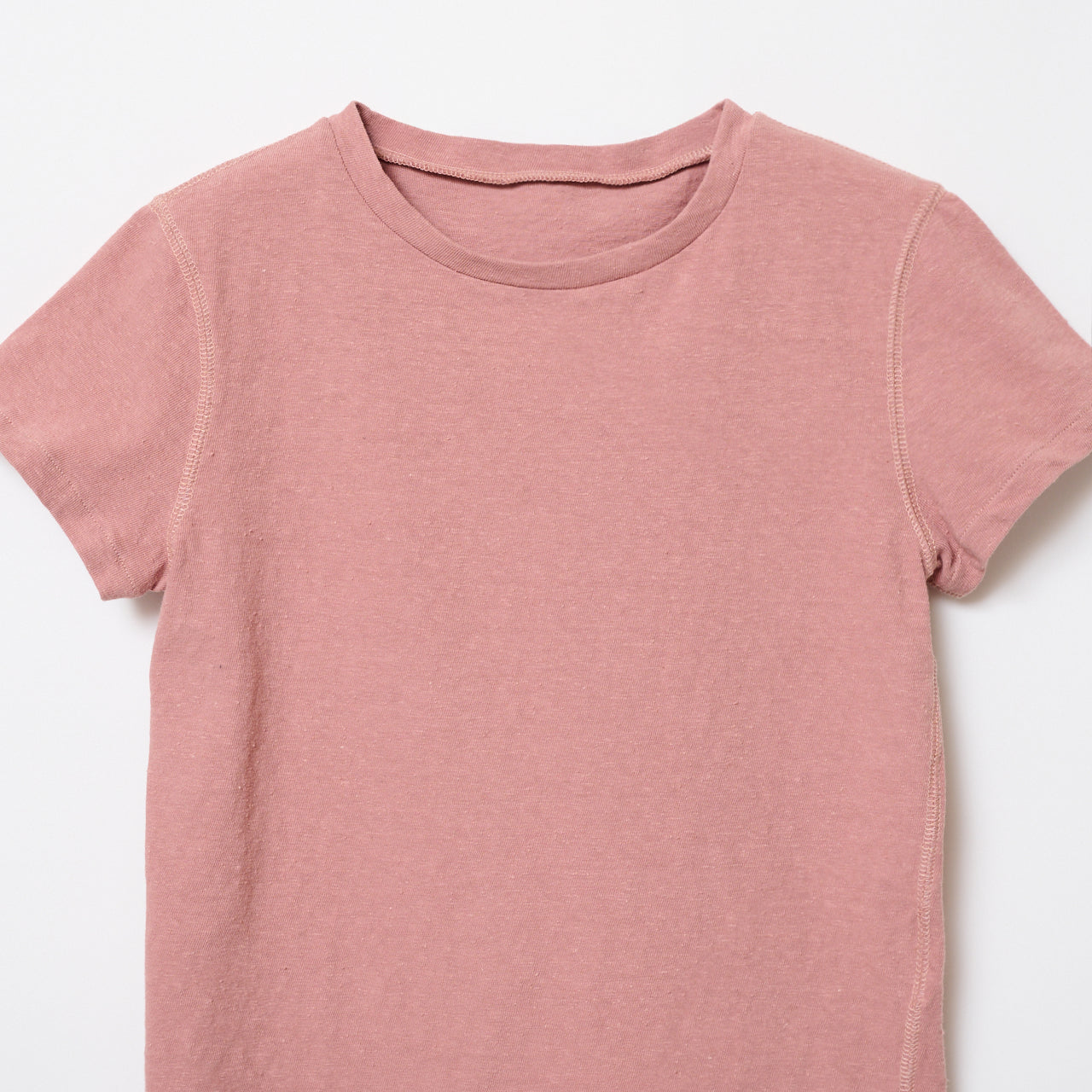 繊維の束が含まれた凹凸のあるネップ糸で織った別注生地を使用したTシャツ。全体にぽつぽつとしたネップが含まれることで生地表面に立体感が生まれます。